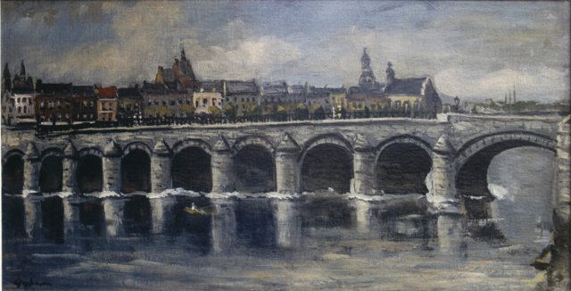 0177, Abtstraat bij avond, Maastricht, olieverf/doek, Dijkman, 50 x 40