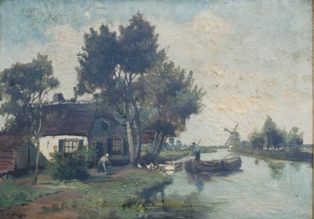 0388, Boerderij aan een wetering, olieverf/doek, C. Dijkman, 43 x 58