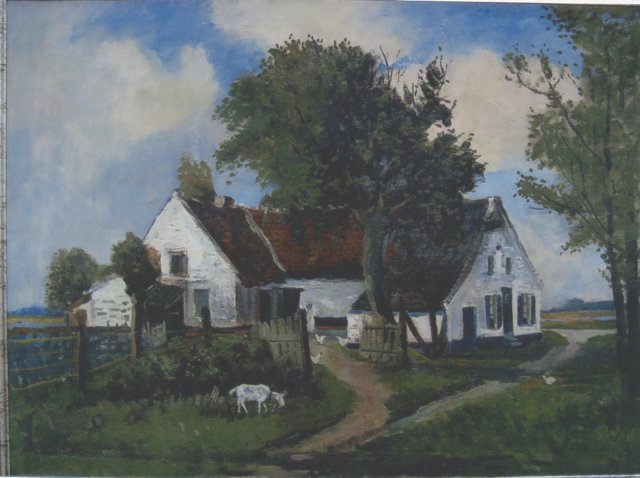 0772, Boerderij bij kerkje, olieverf/doek, C.H. Dijkman, 33 x 41