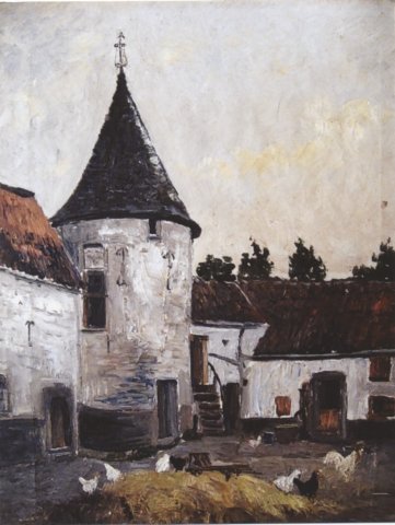 1117, Deels gefantaseerd stadsgezicht van Den Haag, olie/doek, C. Dijkman, 30 x 40