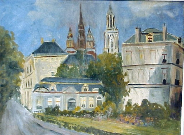 0597, Dorpsgezicht Leut met kerk (België), olieverf/doek, C. Dijkman, 35 x 45