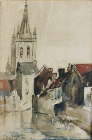 0075, Havengezicht Merwede, Dordrecht, olieverf/doek, Dijkman, 35 x 50