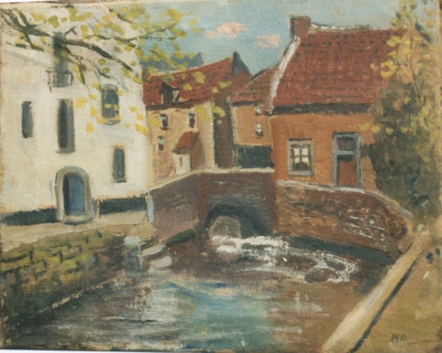 0453, Huis Claassens gezien vaf de Bovenstraat in Borgharen, olieverf/doek, Henk Dijkman, 30 x 40