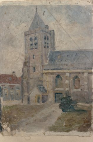 0125, Kerkje in Hees (België), olieverf/doek, niet gesigneerd, 16 x 28