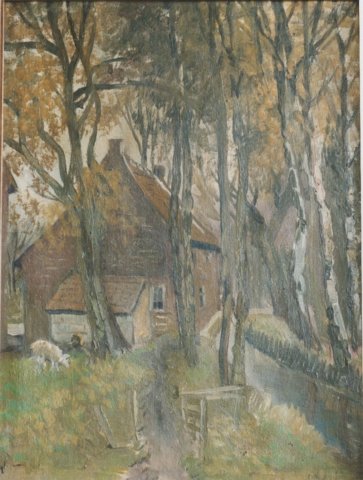 0098, Kikmolen (molenradzijde) te Opgrimbie (België), olieverf/doek, H. Dijkman, 45 x 60
