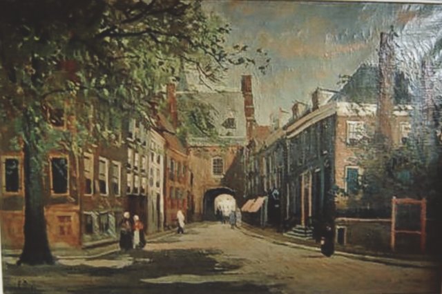 0818, Kneuterdijk met Kloosterkerk en Lange Voorhout, Den Haag, olieverf/doek, C. Dijkman, 50 x 65