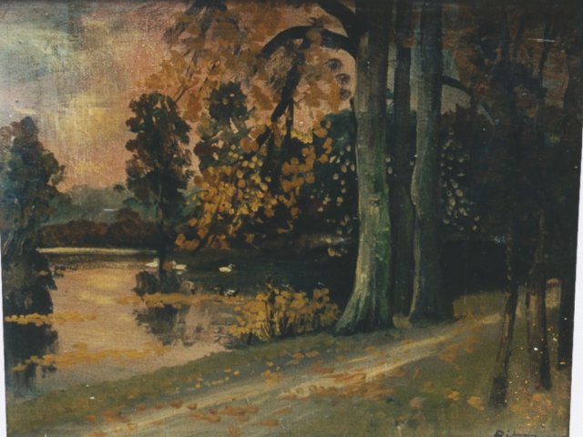 0256, Landschap in oogsttijd, olieverf/doek, Dijkman, 44 x 82