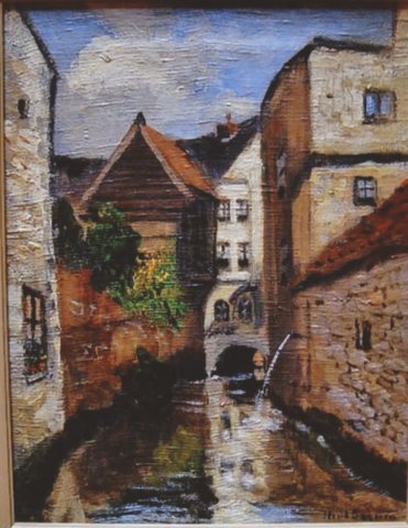 1003, Pesthuis met Bloodbak, Maastricht, olie/doek, Dijkman, 40 x 45