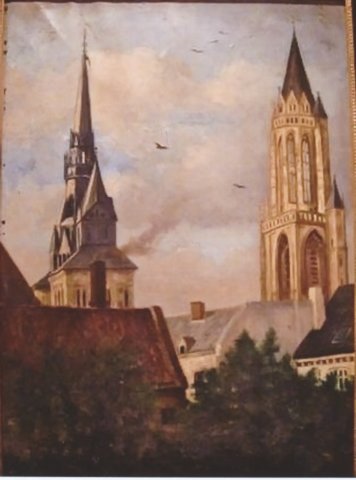 1014, Sint Servaasbrug met O.L.Vrouwekerk, Maastricht, olie/doek, Dijkman, 53 x 103
