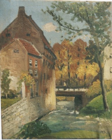 0459, Sluis in de Jeker achter Molenhof, Maastricht, olieverf/doek, Henk Dijkman, 30 x 40
