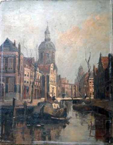 1144, Stads-dorpsgezicht, olie/paneel, Dijkman, 48 x 37, 5