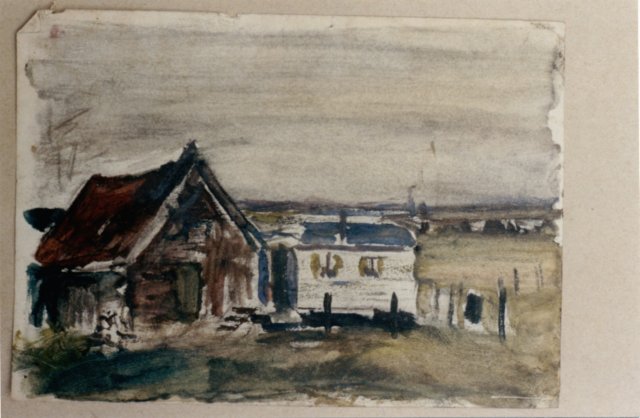 0127, Voorstudie voor Stadsgezicht, gouache + potlood op paier, Dijkman, 14 x 10
