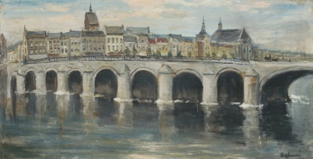 0278, Watermolen, Maastricht (?), olieverf/doek, Dijkman, 50 x 40